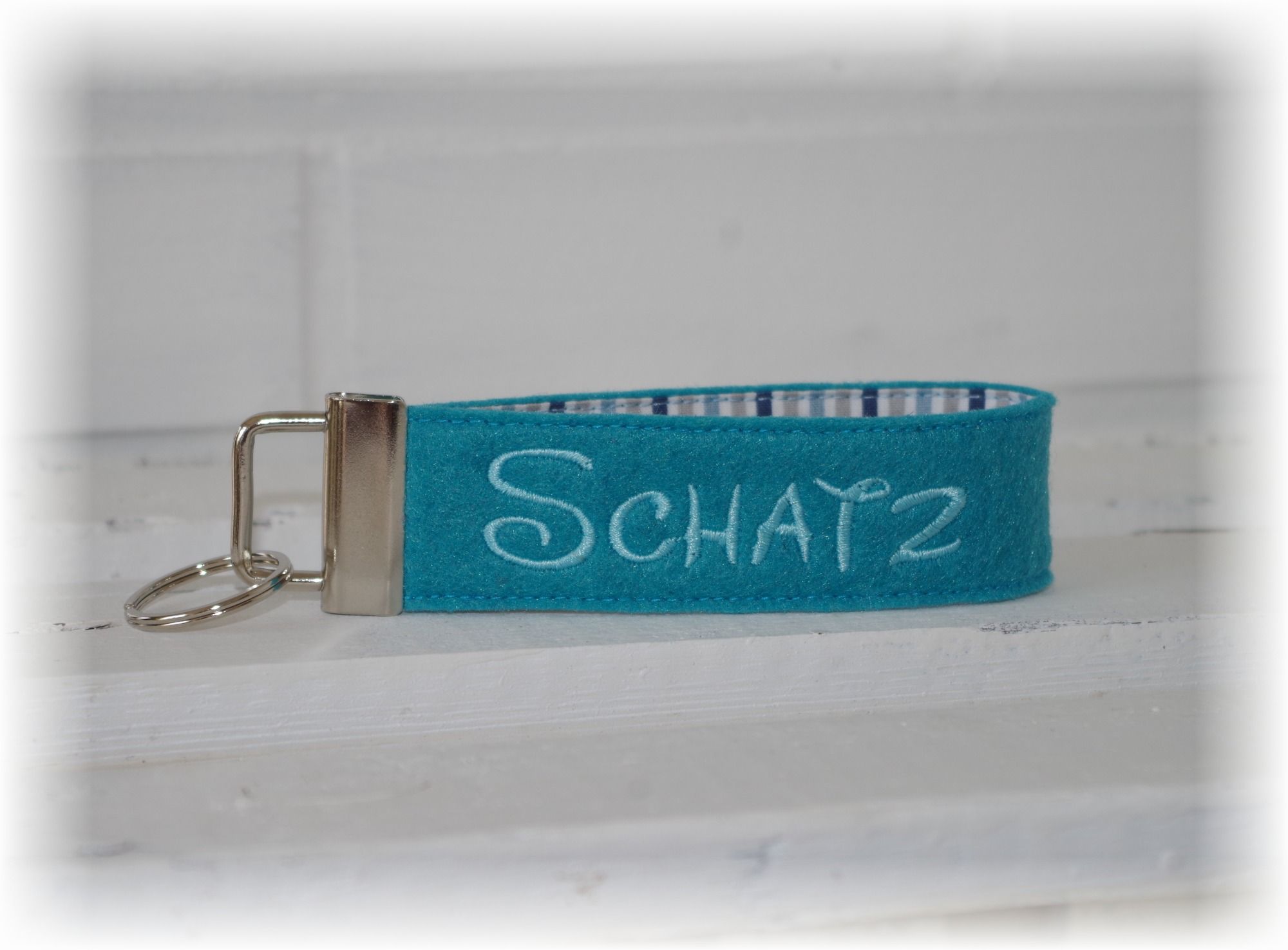 Individueller und ganz persönlicher Schlüsselanhänger aus ca. 3 mm dickem Filz mit Ihrem Wunschnamen oder -text. Sie können aus vielen tollen Farben wählen und haben so ein prima Geschenk für jeden Anlass. Auch als Namensanhänger für den Kita-Rucksack oder die Sporttasche geeignet.